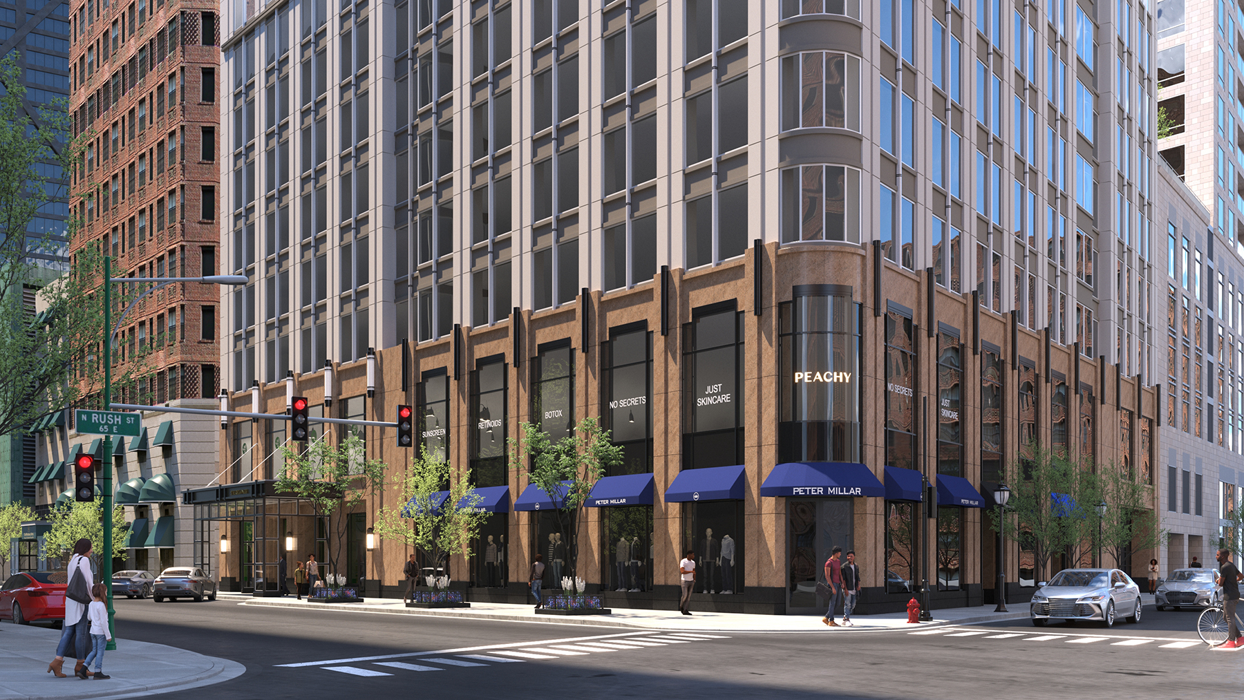 Dramatic second floor space in the Gold Coast at the corner of Rush Street and Delaware Place. Surrounded by prominent retailers and high-profile brands in the well-established Rush Street retail corridor.